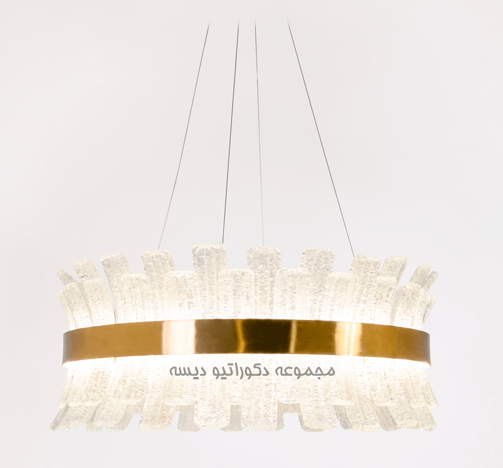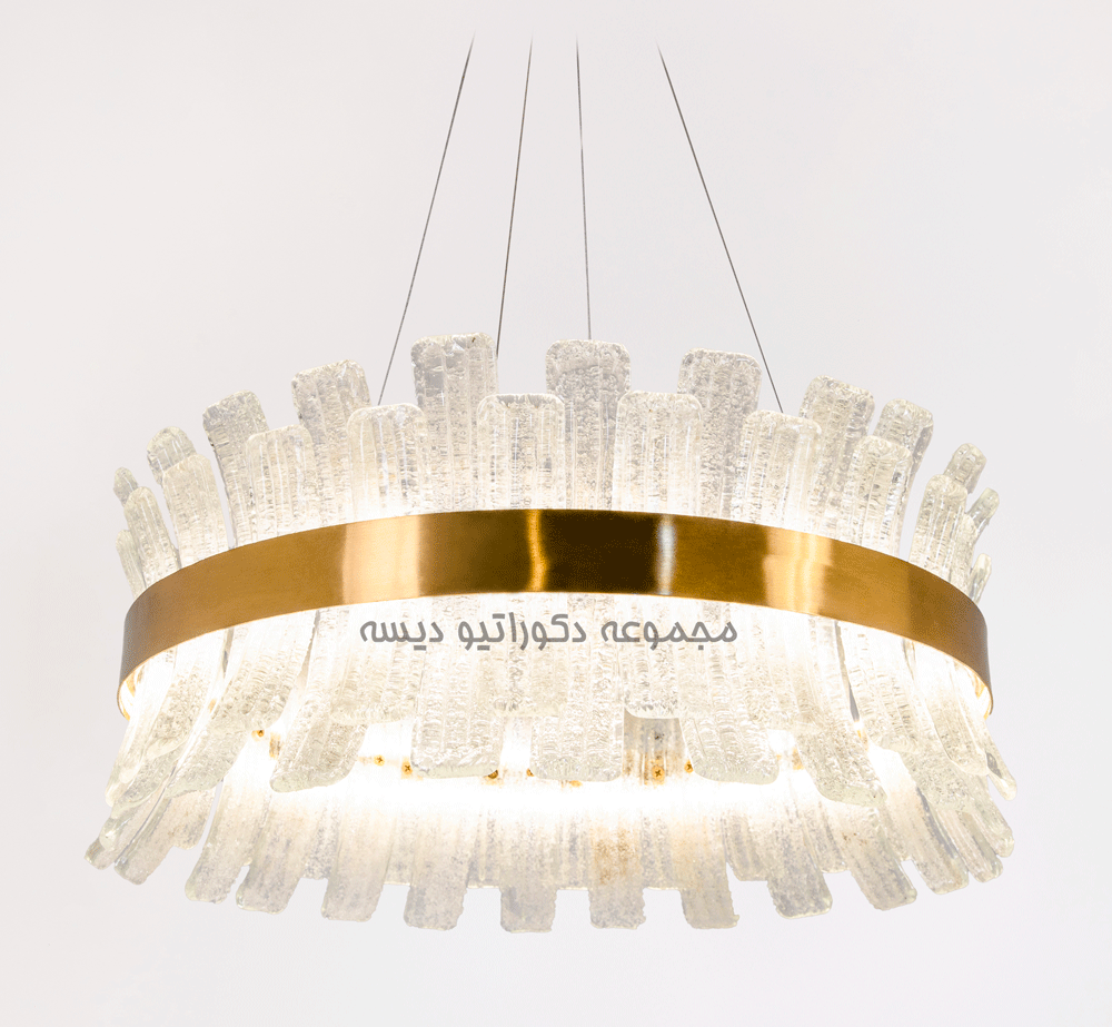نوع کریستال لوستر حلقه ای کریستالی طلایی از نوعی بلوکی وارداتی است که در عین زیبایی و خاص بود بتواند نور را به خوبی از خود عبور دهد.